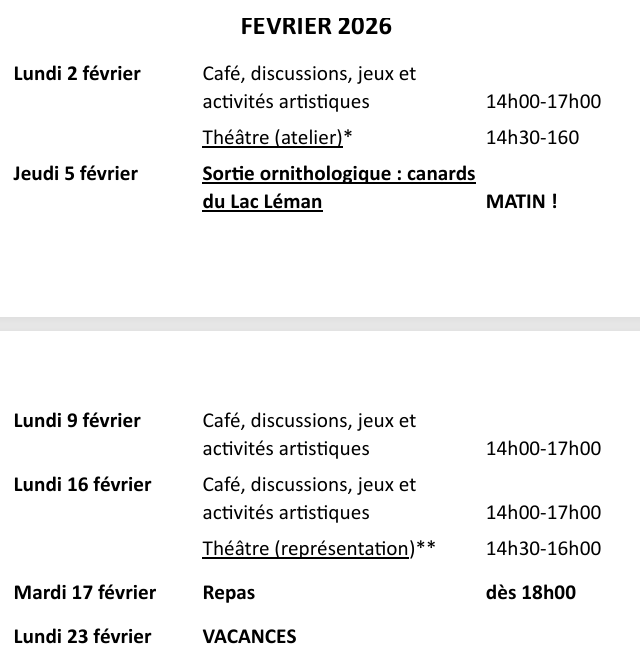Agenda février 2026
